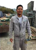 男らしいとび職にあこがれてこの仕事につきました。先輩方に教えてもらいながら、仕事をひとつずつ覚えています。田村建材では会社全体が明るい雰囲気で、仲間もたくさんいます。自分と同じ年くらいの仲間もたくさんいて、とても楽しい職場です。(20歳 職人)